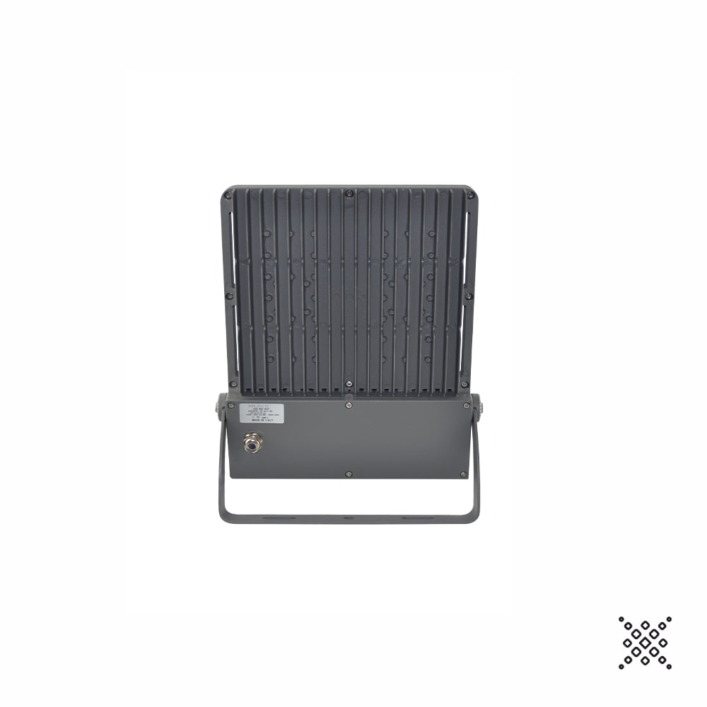 PROIETTORE DA ESTERNO AD ALTE PRESTAZIONI CON SISTEMA OTTICO MULTICHIP PER MIGLIORARE LA DISTRIBUZIONE DELLA LUCE E GARANTIRE UNA ELEVATA EFFICENZA E AFFIDABILITÀ, CORPO CON RESISTENZA AERODINAMICA MIGLIORATA, PASSIVATO E VERNICIATO CON VERNICI EPOSSIDICHE AD ALTA RESISTENZA, BULLONERIA IN ACCIAO INOX E SISTEMA GONIOMETRICO PER UNA PRECISA REGOLAZIONE DEL FASCIO DI LUCE