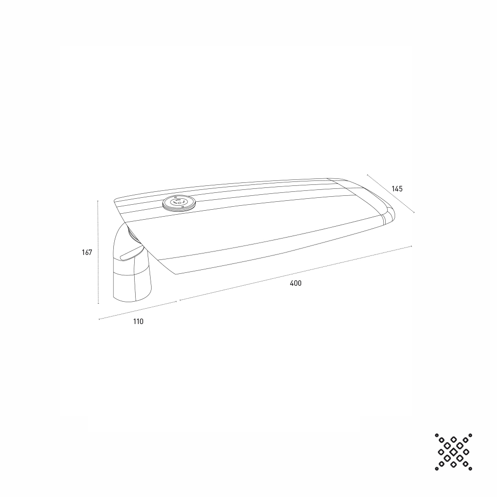 APPARECCHIO PER ILLUMINAZIONE STRADALE ATTACCO TESTAPALO REGOLABILE VERTICALE E ORIZZONTALE ORIENTABILE ± 20 GRADI CORPO