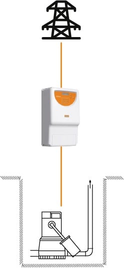 M.P.S. 500 - Kit completo centrale antiallagamento a singola uscita con elettropompa. Il kit comprende: centrale antiallagamento MPS500, 1 elettropompa sommergibile, batterie ermetiche interne, cavo di alimentazione con spina • Singola uscita • Realizzato su struttura portante in acciaio e rivestimento in ABS autoestinguente • Gestione a doppio microprocessore multilingua • Display multifunzioni (tensione rete, batteria, corrente di ricarica, potenza erogata, storico e altre funzioni) • Controllo amperometrico intelligente a riarmo automatico (salvamotore) • Controllo e gestione ricarica delle batterie (7 livelli di ricarica) • Segnalazione acustica e ottica elettropompa in avaria (sovraccarico).