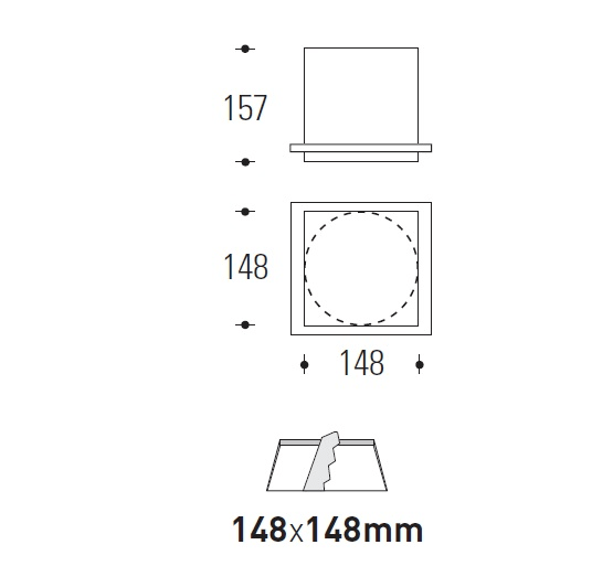 Carenatura trimless per 1 vano ottico. 148x148mm.