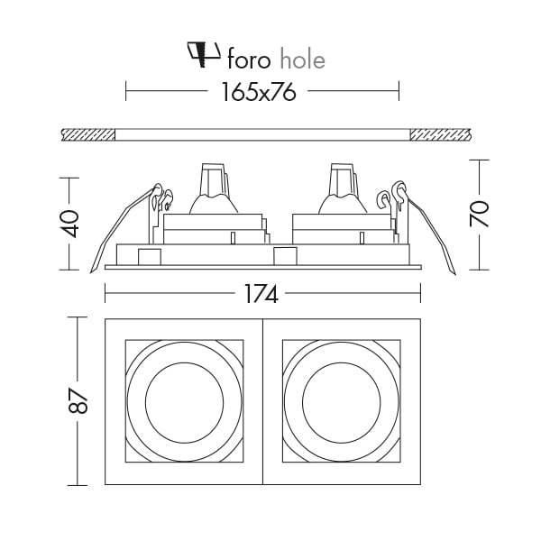 ROSSINI - RSS6501-2 DOWNLIGHT DOPPIO IN ALLUMINIO SPAZZOLATO - 6501-2