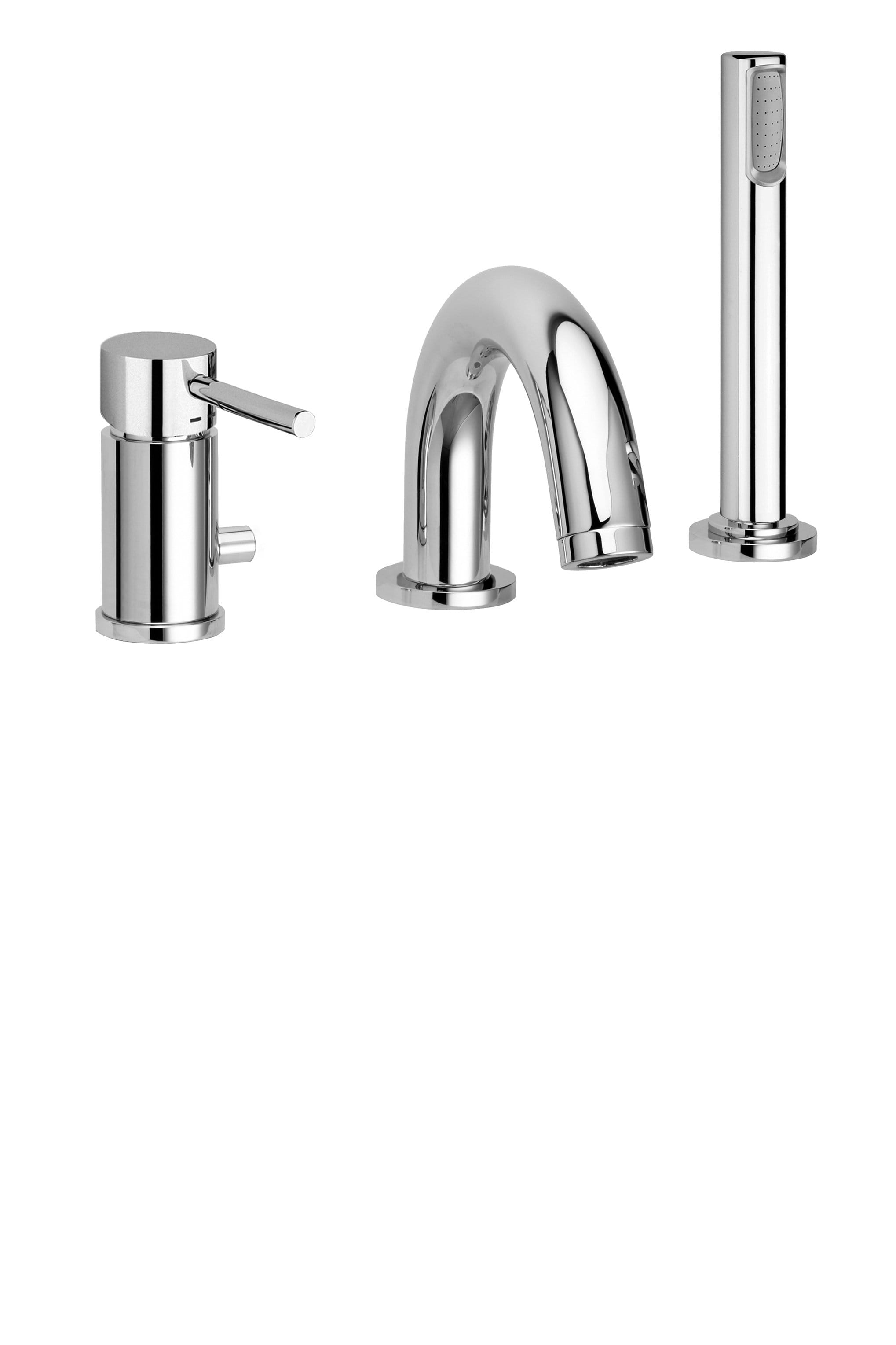 Miscelatore bordo vasca con deviatore e bocca e aeratore M28x1 (3 fori) completo di: • set 5 flex inox per miscelatore • doccia e flessibile con piombo. Finitura cromo