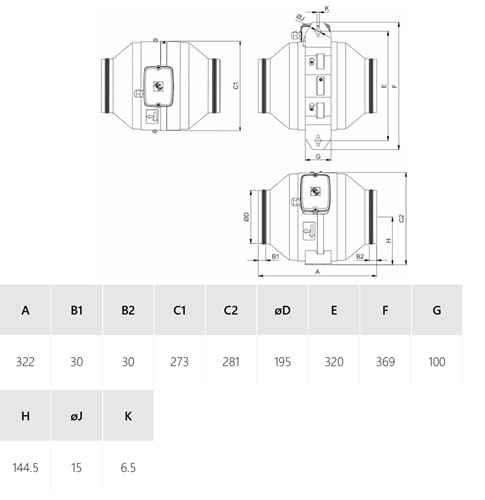Ventilador en línea para conductos circulares con carcasa de muy bajo perfil fabricada con chapa de acero galvanizado y junta de goma en las bridas. Rodete de alto rendimiento,directrices y difusor de descarga fabricados con plástico inyectado, para aumentar el rendimiento y disminuir el nivel sonoro. Caja de bornes IP65 fijada en la carcasa. Pie soporte suministrado con el ventilador, que permite montar el ventilador en dos posiciones diferentes y con cualquier orientación del eje. Motor Motor monofásico de rotor externo montado con soporte antivibratorio para limitar la transmision de las vibraciones y reducir el nivel de ruido, 220-240V 50/60Hz, IP44, clase F, con protección térmica de rearme manual y velocidad regulable por tensión.Temperatura de trabajo -20/60ºCModelo JETLINE-200 (220-240V50/60HZ) N8 *.