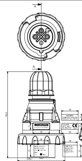 SCAME PARRE SPA - SCA219.1636 SPINA MOBILE IP66 16A 3P+T 6H EX ZONA1 - 219.1636