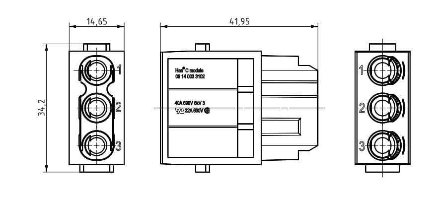 SCAME PARRE SPA - SCA914.0033102 INSERTO FEMMINA MODULO HAN C (MAX D.7,5) - 914.0033102