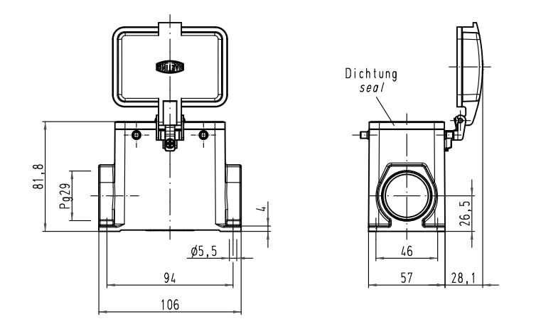 CUSTODIA FISSA+COPERCHIO 2 LEVE 32P PANNELLO 1 USCITA PG29