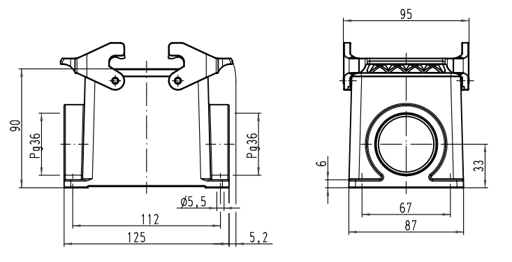 CUSTODIA FISSA 2 LEVE 32P PANNELLO 2 USCITE PG36