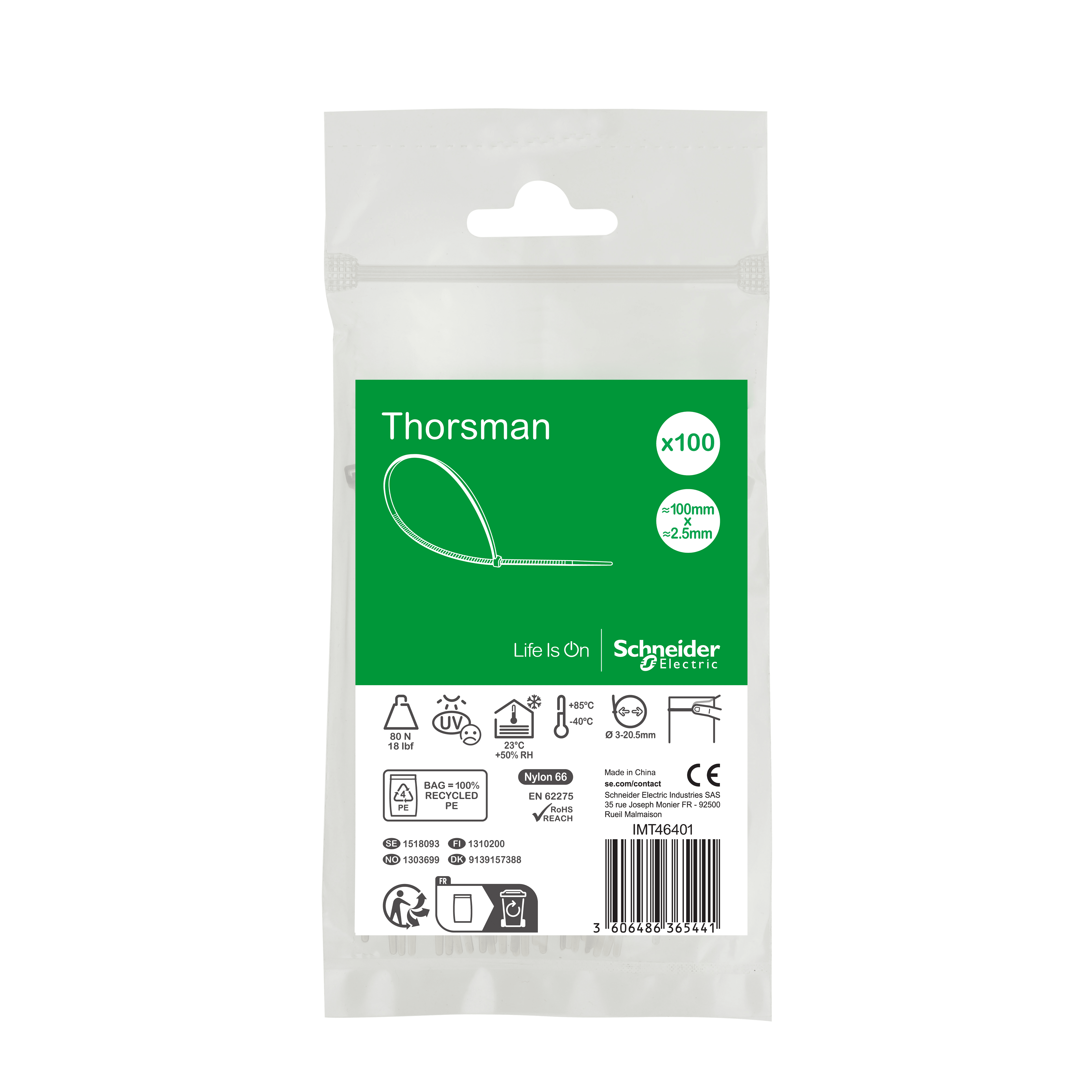 SCHNEIDER ELECTRIC - SNRIMT46401 Cable tie, Thorsman installation material, 100x2.5mm, clear