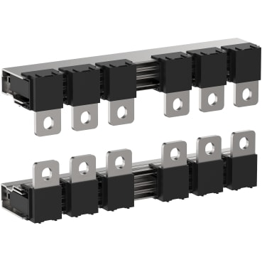 Questi accessori sono barre di inversione per il contattore TeSys Giga 265-500. Viene utilizzato per il circuito elettrico a 3 poli. Queste estensioni dei morsetti possono essere collegate ai morsetti standard. La corrente nominale è fino a 500 A. Può coprire temperature ambiente di funzionamento da -25°C a 60°C, senza declassamento fino a 3000 m di altitudine.