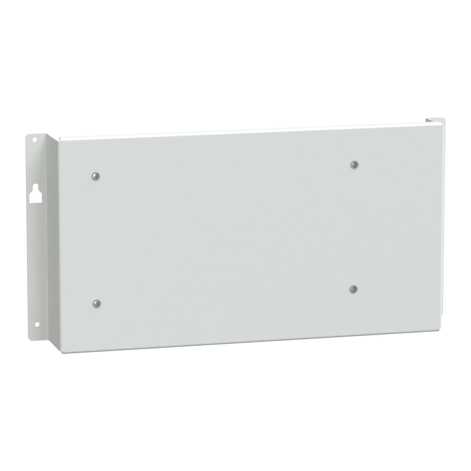 Piastra di montaggio per PrismaSeT G di trasferimento 160A, 3P/4P. Tipo di piastra di montaggio piastra piena. Il numero di dispositivi per fila orizzontale è 1, con 8 moduli verticali. Da inserire in una piastra frontale fissa PrismaSeT G verticale. perarmadio a pavimento - larghezza 600/850 mm e profondità 200 mm. Piastra di montaggio in lamiera d'acciaio trattata con polvere epossidica. finitura superficiale opaca/testurizzata con bianco (RAL 9003). La temperatura ambiente di funzionamento è compresatra 25°C e 55°C, in conformità con l’IEC 61439-1/ Β 61439-2.