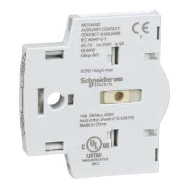 Gli interruttori di disconnessione del motore MD sono omologati UL 508 Adatti per il controllo del motore ( UL File E164864) e sono conformi alla norma IEC 60947 3. È in un involucro NEMA 4X compatto adatto per l'uso in applicazioni NEMA 1, 3, 3R, 4, 4X e 12. Questo modulo di contatto ausiliario ha due contatti normalmente aperti. Il contatto ausiliario è omologato UL ed è certificato CSA.