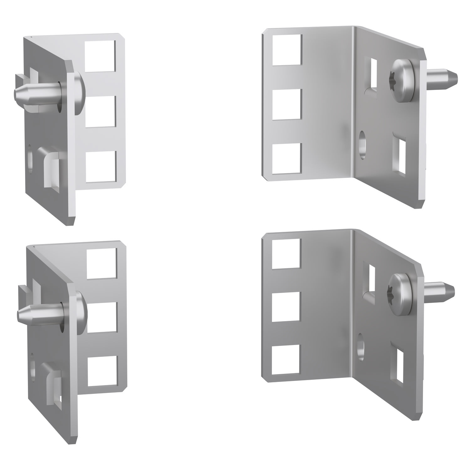 PanelSeT SF/SM - Set di 4 staffe. A 44,45 x P 73 mm. Per installare apparecchiature di altezza 1U o 3U. Applicazione elettronica. Altezza regolabile con passo di 25 mm. Supporto di montaggio direttamente sulla struttura SF o PanelSeT SM con profilato verticale. In acciaio, finitura superficiale zincata. 1 Unità (19 pollici).