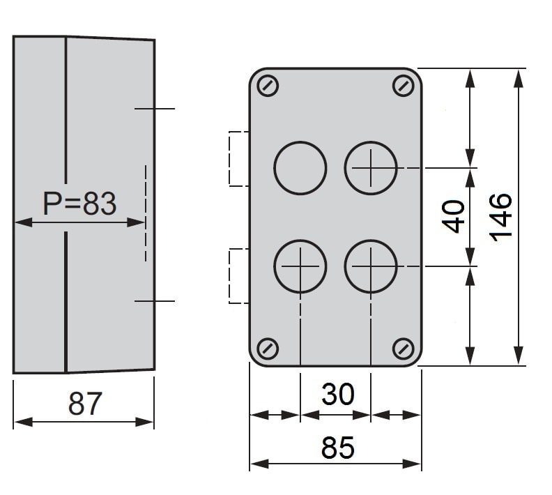 SCHNEIDER ELECTRIC - SNRXAPA1104 PULSANTIERA VUOTA PLASTICA 4 FORI 2 FILE - XAPA1104