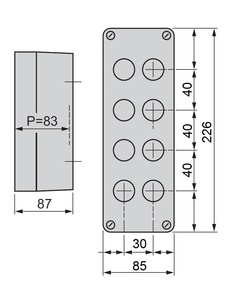SCHNEIDER ELECTRIC - SNRXAPA2108 PULSANTIERA VUOTA PLASTICA 8 FORI 2 FILE - XAPA2108
