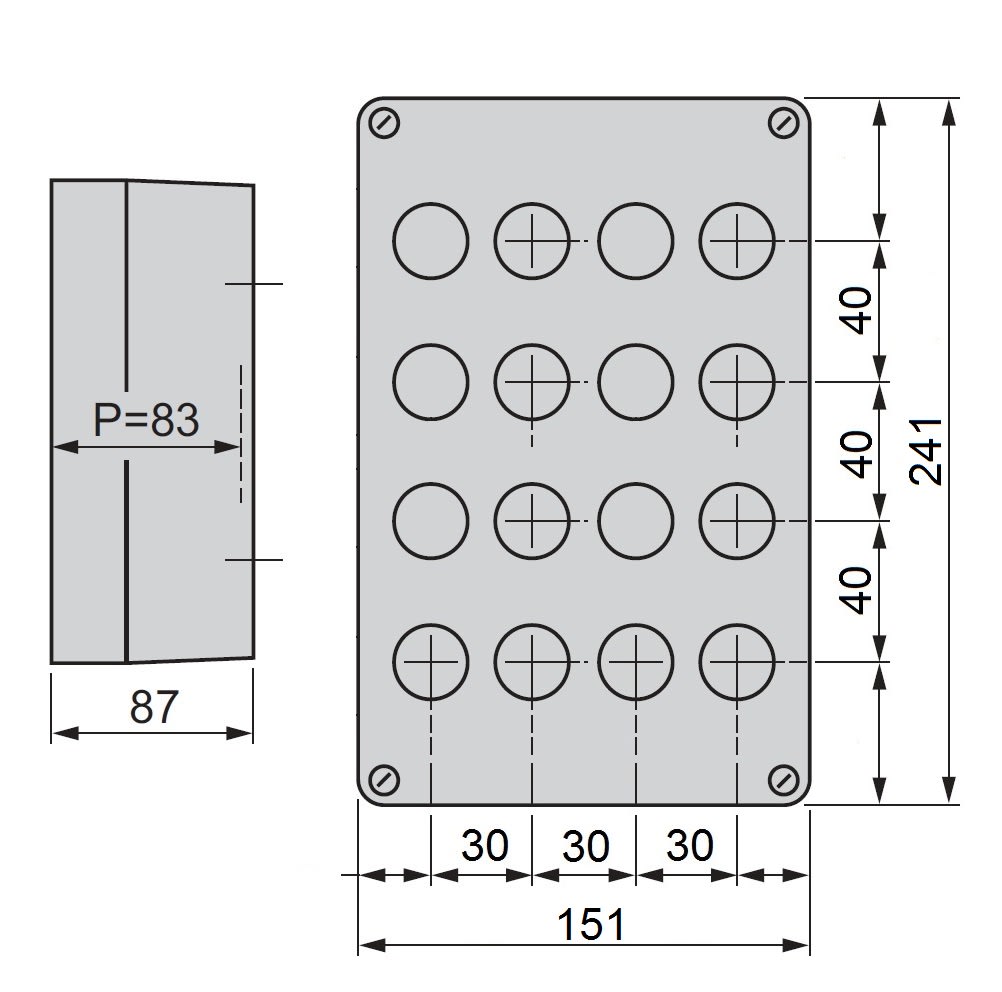 SCHNEIDER ELECTRIC - SNRXAPA4116 PULSANTIERA VUOTA PLASTICA 16 FORI 4FILE - XAPA4116