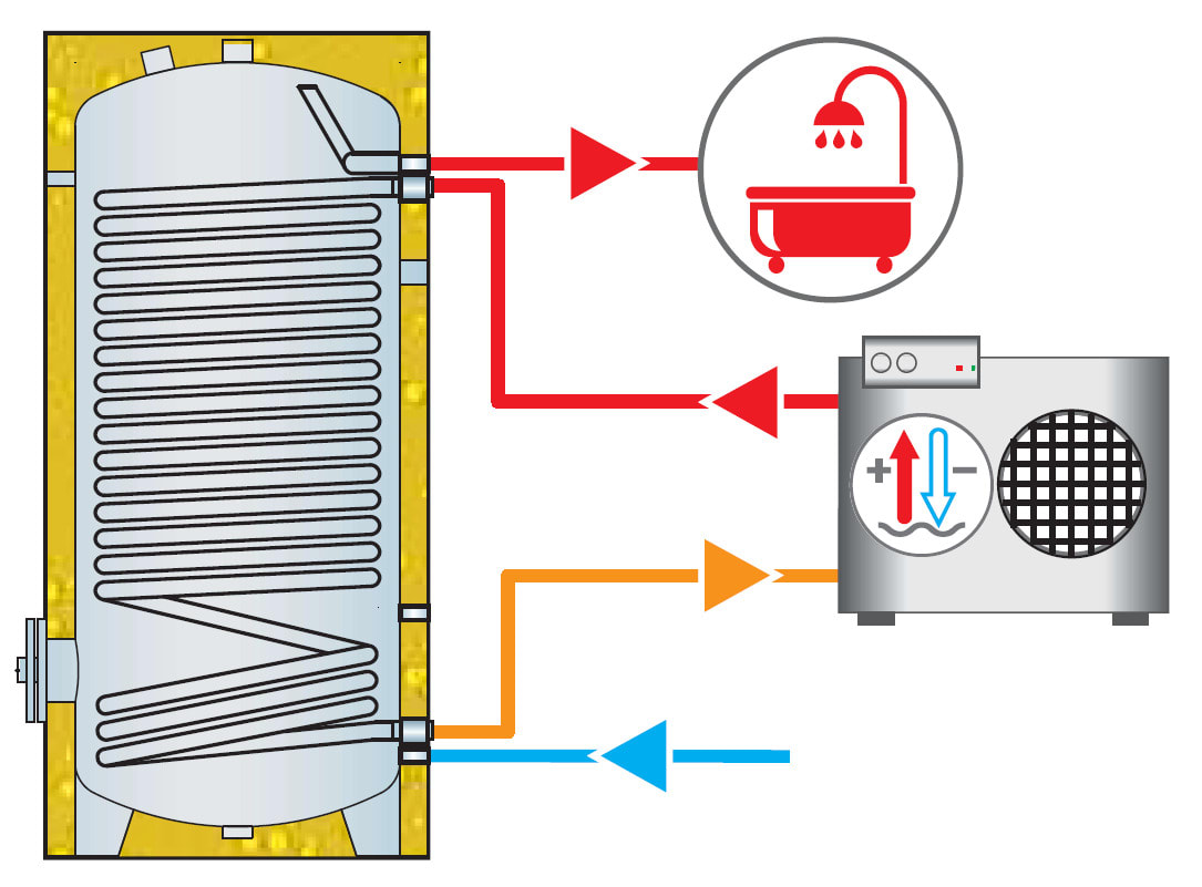 BOLLITORE PER POMPA DI CALOREI prodotti della serie CMAX sono bollitori per l‘accumulo di acqua calda sanitaria.Le spire inferiori dello scambiatore arrivano fino alla parte piu bassa del bollitore riscaldando così una maggior quantità d‘acqua.