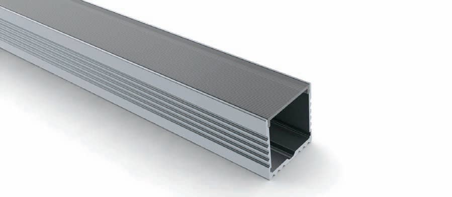Profilo in alluminio anodizzato utilizzabile come corpo illuminante indipendente per l’illuminazione di uffici, librerie, showroom... Data la larghezza del profilo è possibile installare 2 strip LED anche di alta potenza (fino a 30W/m). Il profilo, dotato di vari tipi di copertura, può essere messo in sospensione tramite cavi in acciaio inossidabile oppure fissato direttamente al soffitto. Utilizzabile con Strip LED di alta potenza (fino a 30W/m).