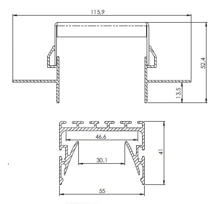 SIRIOprofile L55-PB Trim Profilo + copertura prismatica bianca - 2 mt. SIRIO profile L55 TRIMLESS ha un design funzionale e moderno che lo rende particolarmente versatile. Ideale per tre diversi tipi di installazione: incasso su cartongesso, su superficie o a sospensione. Cover ampia 55 mm. Il profilo è idoneo anche per le strisce LED rigide a doppia fila. La forma interna è ottimizzata in modo da aumentare la distribuzione della luce e l'efficienza della lampada. Il tutto si traduce in una lampada LED dal design contemporaneo per LED professionali e altamente performanti. Consigliamo di installare questo profilo come illuminazione principale su soffitti in cartongesso con lastre di 12,5 mm e 24 mm. Il profilo può anche essere usato come installazione indipendente su superficie e come lampada LED a sospensione. Con gli accessori per la sospensione si ha la possibilità di realizzare un corpo illuminante d’arredo. Finitura in alluminio anodizzato. Cover in policarbonato applicabile ad incastro con un semplice click, resistente ai raggi UV. Copertura: bianca prismatica. Disponibile chiave d’appoggio per calibrazione profili. APPLICAZIONI: Illuminazione LED ad incasso su soffitti di cartongesso, su superficie o a sospensione. Ampia cover di 55 mm. Illuminazione di uffici, negozi, saloni, alberghi. Corpo illuminante indipendente. Possibile applicazione a sospensione con cavi.