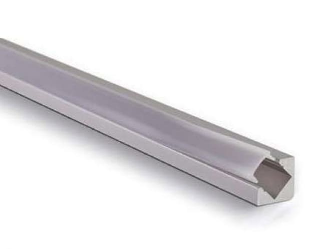 SIRIOprofile Corner45-B Profilo + copertura bianca - 2 mt. SIRIO profile corner 45° è un profilo LED con un angolo di emissioneluminosa di 45°. La luce emessa a 45° dal profilo evita l’abbagliamento. L'elevata densità di alluminio presente nel profilo (peso 0,45 kg/m) ottimizza il raffreddamento della strip LED. Gli accessori a disposizione per il profilo LED CORNER 45°, come le testate di chiusura e le staffe di fissaggio, contribuiscono ad una finitura professionale del profilo. Finitura in alluminioanodizzato. Cover in policarbonato, applicabile ad incastro con un semplice click, resistente ai raggi UV. Copertura: bianca (punti LED non visibili). Il profilo è disponibile anche in bianco RAL9010. Illuminazione LED sottopensili cucina. Illuminazione LED scaffali. Applicato su mobili. Illuminazione LED di Stand fieristici. Su richiesta profilo in versione IP67 completa di strip LED. Profilo disponibile in diverse lunghezze (fino ad un massimo di 6 mt). Su richiesta profilo realizzato su misura completo di Strip LED.