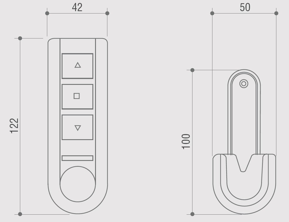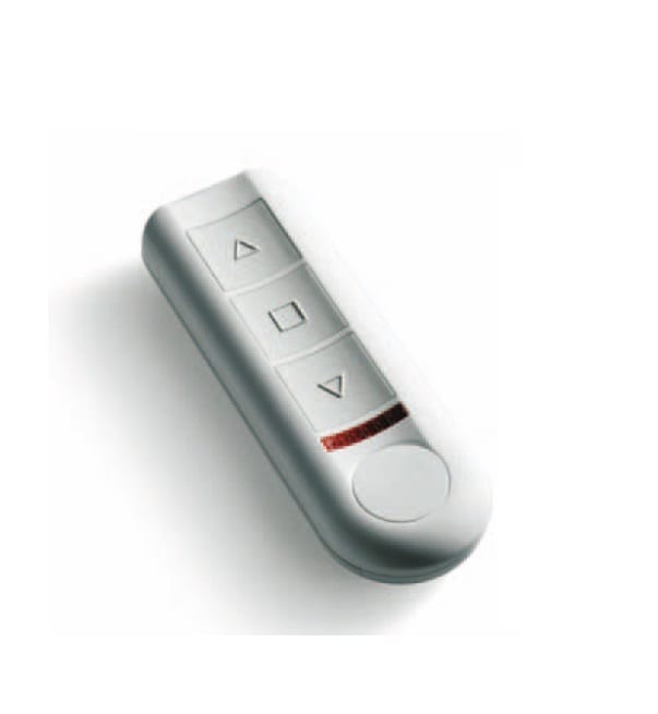 Trasmettitore wireless per il comando di una tapparella o tenda con funzione apre-stop-chiude. Completo di supporto murale. Colore: bianco. Alimentazione: 3V ± 10%(batteria al litio CR2430). Temperatura di esercizio: -10° +55°C.