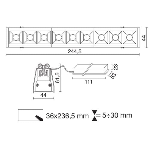 SIDE SPA - SDE3722-LBC TRAIL 9LED 36X23.5MM 15.5W 1066LM 3000K - 3722-LBC