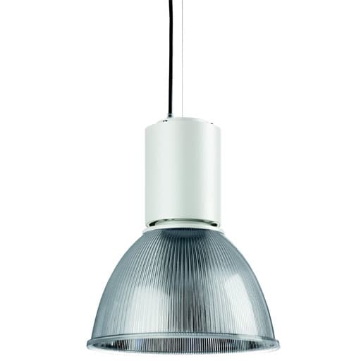installazione: A Sospensione. fissaggio: Sistema sospensione con fune/i in acciaio L=2100 mm e regolazione micrometrica. corpo / struttura: Corpo in estruso di alluminio. verniciatura: Verniciatura per interni in polveri epossidiche. colore: Bianco. riflettore ottica: Diffusore in policarbonato trasparente. pressacavo: Fermacavo in nylon 66. alimentatore: alimentatore integrato per diodi LED, uscita stabilizzata 1050mA dc. tensione: 220-240V 50/60Hz. fascio luminoso: Simmetrico diffondente 40 °. classe isolamento: Classe 1. peso: 2,700 kg. grado IP: 20. filo incandescente: 650 °C. lampada inclusa: si. tipo LED: Power LED. potenza lampada: 37 W. flusso lampada: 3450 lm. temperatura di colore: 4000K. indice resa cromatica: 90. Rifettore in alluminio purissimo brillantato.