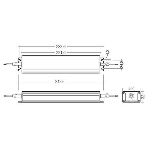 corpo / struttura: Corpo in lamiera di alluminio. colore: Alluminio satinato. equipaggiamento: Cavo di alimentazione L = 0.5 mt. alimentatore: alimentatore integrato per diodi LED uscita 24Vcc. tensione: 220-240V 50/60Hz. rifasamento: si. classe isolamento: Classe 2. peso: 0,800 kg. grado IP: 67. filo incandescente: 650 °C