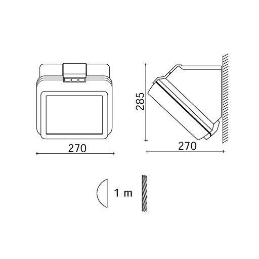 Corpo in pressofusione di alluminio. Verniciatura in polveri di poliestere con trattamento speciale per esterni (sabbiatura, decappaggio, n.3 lavaggi, fluorzirconatura, fondo in polveri epossidiche e finitura di superficie in polvere di poliestere). Riflettore ottica: Lente LED in metacrilato. Equipaggiamento: Guarnizioni in gomma siliconica. Vetro / schermo: Vetro chiaro serigrafato temprato. Pressacavo: Pressacavo in polyammide PG13,5. Alimentatore: alimentatore integrato per diodi LED,uscita stabilizzata 700mA dc. Lampada LED 48W 4938lm 4000K.
