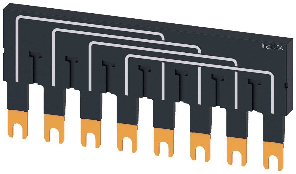 accessori per 3KC3, 3KC6 ponticello di collegamento per collegamento lato carico a 4 poli per 40-125A contiene 1 pezzo Accessori per commutatore di rete SENTRON 3KC9 per unelevata flessibilità. Grazie a unampia gamma di accessori, i commutatori di rete possono essere utilizzati per diverse esigenze ed essere installati successivamente in qualsiasi momento. Sicurezza integrale per utenti e sistemi.
