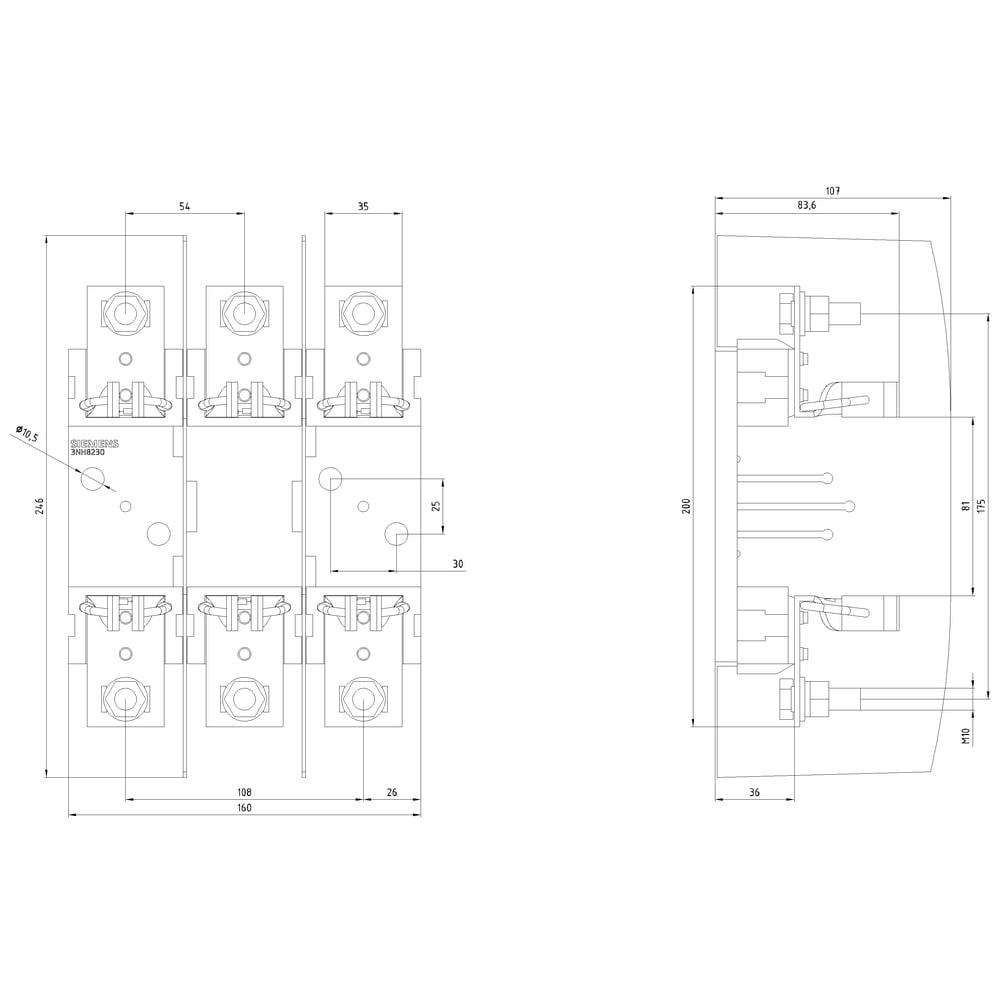 SIEMENS - SIE3NH8230 BASE 3P NH1 250A/690V (1000V) CERAM.VITE - 3NH8230