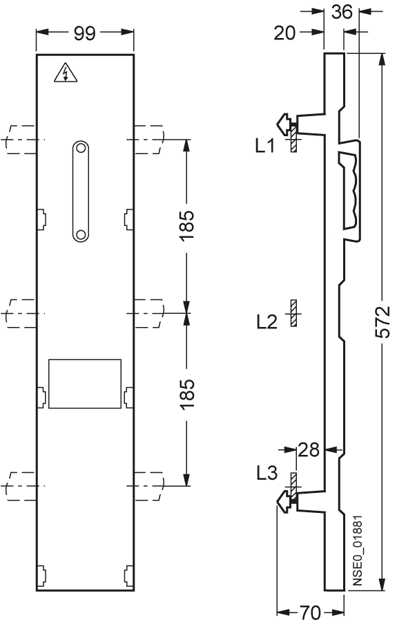 accessori per sezionatori verticale sottocarico con fusibili 3NJ41 copertura di sezione libera per sbarre collettrici con interasse sbarre collettrici 185 mm, larghezza 100 mm Dispositivi di protezione SENTRON - Una scelta sicura.