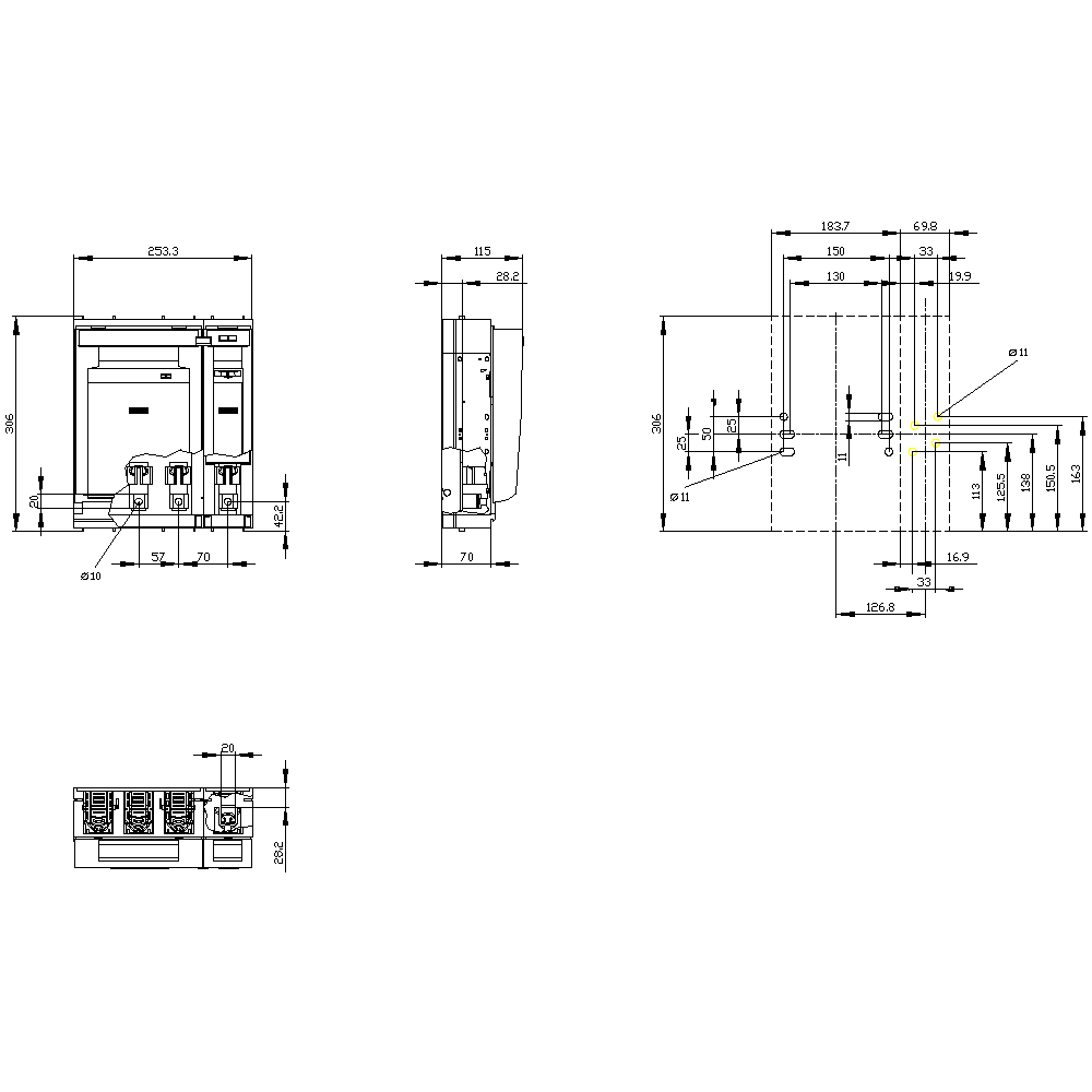SIEMENS - SIE3NP11441DA20 SEZ.FUS.NH1 4P 250A PIASTRA 70MM AL.MOR - 3NP11441DA20