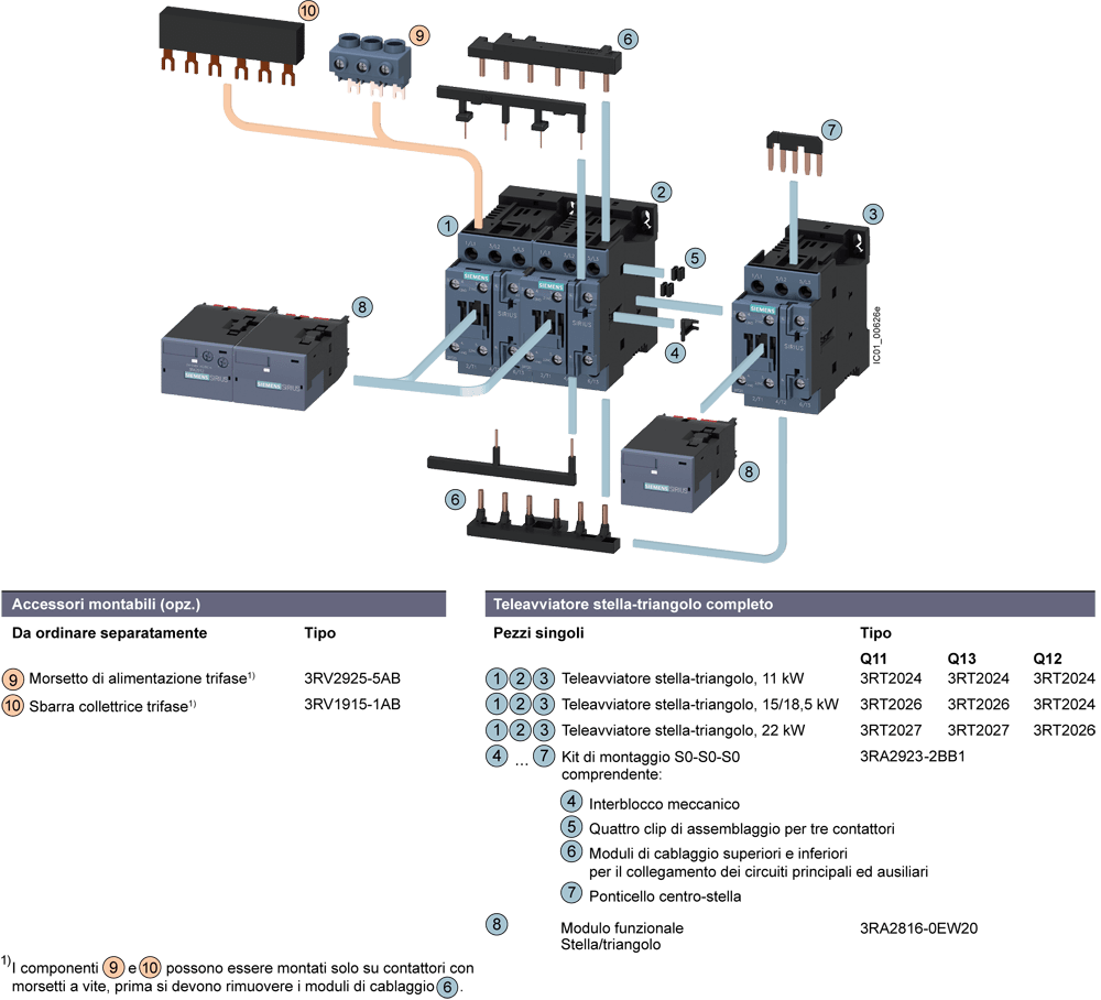 combinazione stella-triangolo AC-3, 15/18,5 kW/400 V, DC 24 V a 3 poli, grandezza costruttiva S0 morsetti a molla interblocco elettrico e meccanico , 3 NO + 3 NC integrato Teleavviatore stella-triangolo SIRIUS 3RA24 per lavviamento graduale di motori asincroni trifase. Il teleavviatore stella-triangolo 3RA24 è una combinazione testata e premontata in fabbrica di tre contattori 3RT2, che sono già interamente cablati e collegati meccanicamente ed elettricamente. Il modulo funzionale incorporato con logica di comando integrata e regolazione del tempo sostituisce lintero cablaggio nel circuito di comando. Sono apparecchi tropicalizzati, con omologazioni internazionali (ad es. IEC e UL/CSA) e IE3/IE4 ready. I teleavviatori stella-triangolo 3RA24 nelle grandezze costruttive da S00 a S3 sono fornibili con comando AC e DC. Essi sono offerti con morsetti a vite o a molla per il montaggio su guida DIN o il fissaggio a vite. In più sono fornibili varianti per il collegamento a IO-Link o AS-Interface. Tutti gli accessori dei contattori 3RT2 sono unificati per tutte le grandezze costruttive e possono essere impiegati anche per le combinazioni di contattori. I teleavviatori stella-triangolo 3RA24 sostituiscono la comprovata serie costruttiva 3RA14. Semplice, efficiente, sempre attuale - il sistema modulare SIRIUS.