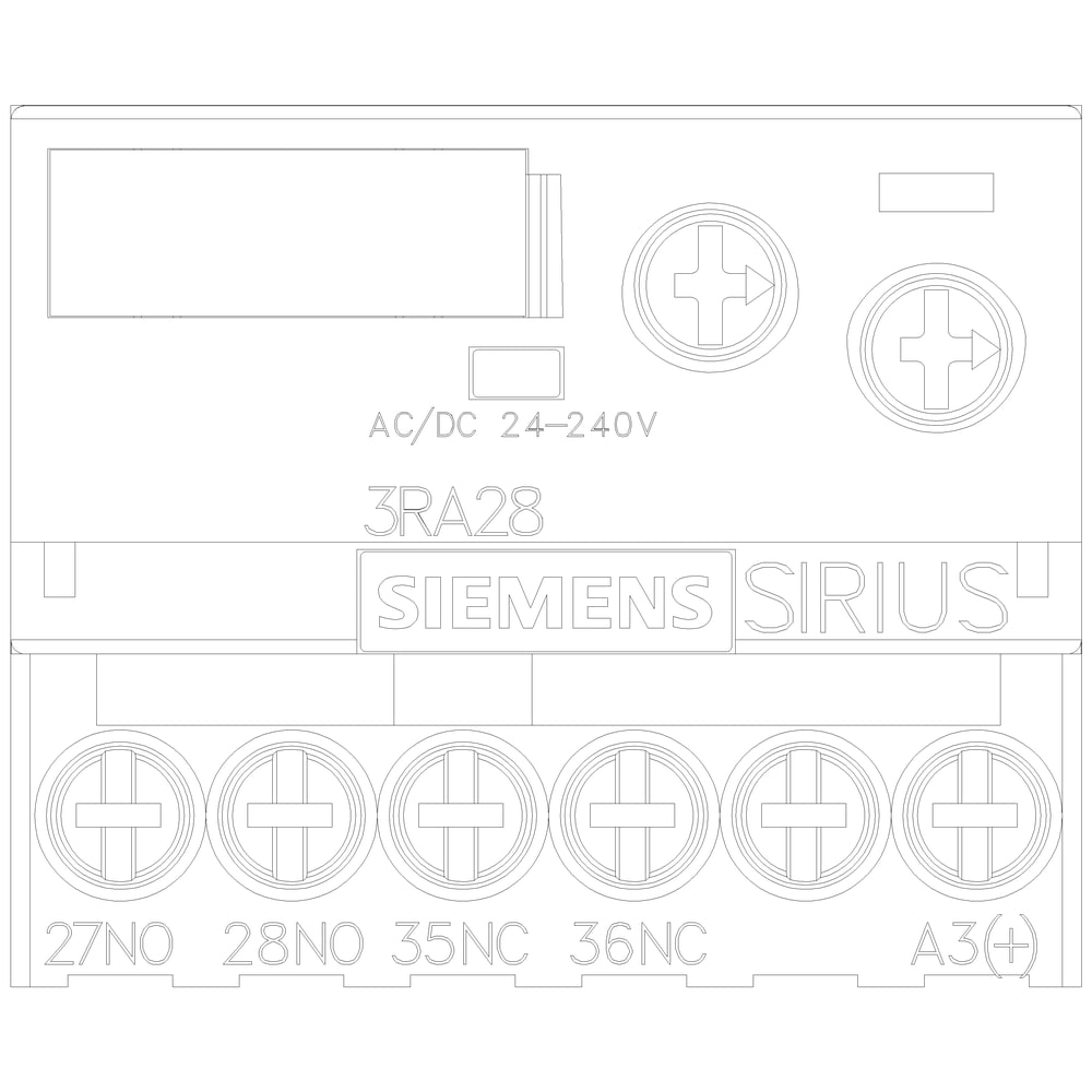 blocchetto di contatti ausiliari ritardato elettronicamente blocchetto di contatti ausiliari, ritardato alla diseccitazione, con segnale di comando, relè 1 NC + 1 NO, intervallo di tempo 0,05...100 s, AC/DC 24...240 V, 50/60 Hz, varistore per lo smorzamento delle bobine del contattore integrato, morsetti a vite, innestabile a scatto sul lato frontale per contattori 3RT20 e contattori ausiliari 3RH2 Blocchetto di contatti ausiliari ritardato elettronicamente SIRIUS 3RA28 per la commutazione ritardata di circuiti a valle per il montaggio su contattori 3RT2 e contattori ausiliari 3RH2. I blocchetti di contatti ausiliari ritardati elettronicamente offrono unelevata precisione di regolazione con campi dei tempi commutabili e dispongono di un interblocco elettrico integrato e di un varistore integrato lato fabbrica (circuitazione di protezione). Linserimento semplice e senza attrezzi consente la realizzazione di funzioni di temporizzazione indipendenti dallapparecchiatura di comando senza cablaggio addizionale. Si escludono così gli errori di cablaggio e si riducono i costi di collaudo. Grazie al montaggio frontale agli apparecchi si risparmia posto sulla guida DIN. Gli apparecchi sono impiegabili in tutto il mondo grazie ad approvazioni internazionali (ad es.IEC, CCC, UL/CSA). I blocchetti di contatti ausiliari ritardati elettronicamente sono fornibili per contattori 3RT2 e contattori ausiliari 3RH2 nelle grandezze costruttive da S00 a S3. Disponibili con un ampio campo di tensione AC/DC 24-240 V, uscite a scelta 1 NO + 1 NC o 1 CO e con morsetti a vite o a molla. Per i blocchetti di contatti ausiliari ritardati elettronicamente sono disponibili kit di cablaggio e una copertura piombabile. Relè SIRIUS - un programma per ogni evenienza.