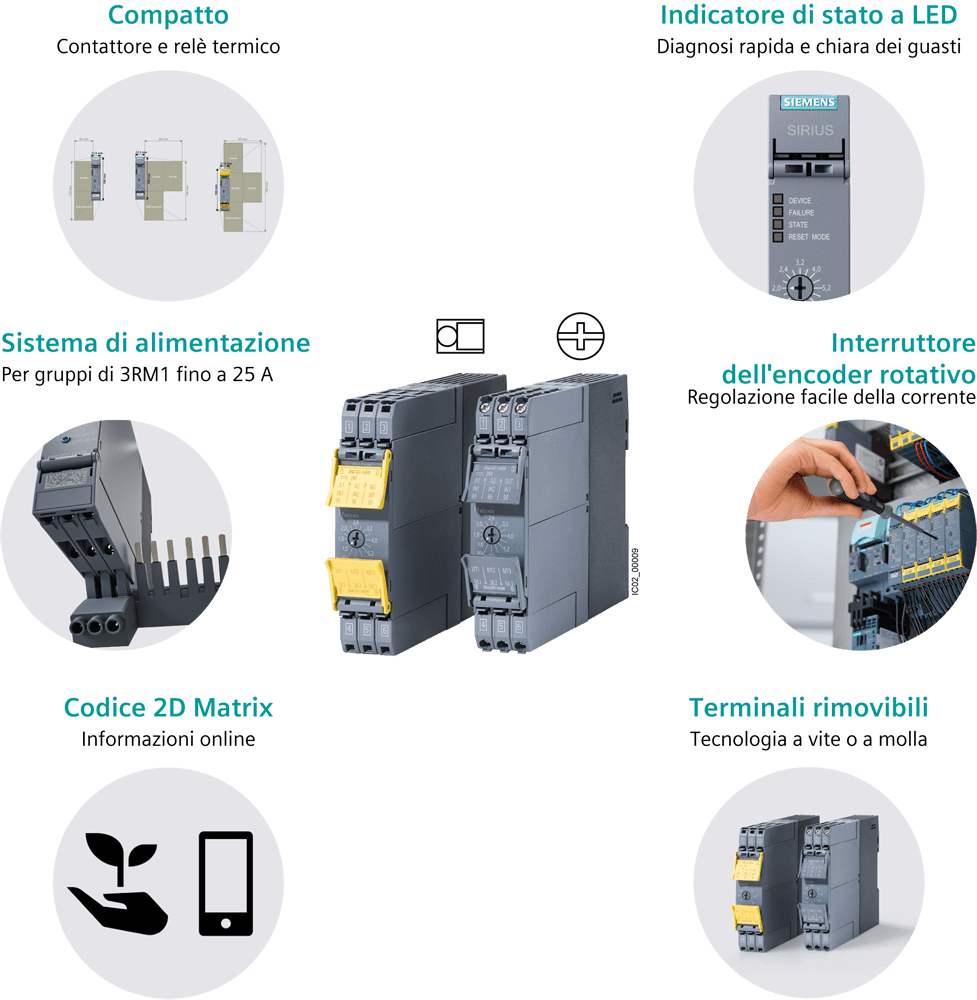 SIEMENS - SIE3RM11021AA14 Avviatore diretto Failsafe, 0,4 ... 2 A, AC 110-230 V, morsetti a vite