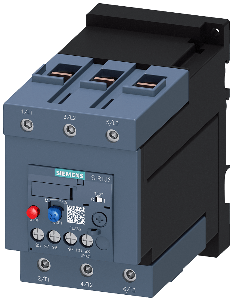 relè di sovraccarico 70...90 A termico per protezione motore grandezza costruttiva S3, CLASS 10 montaggio separato circuito principale: morsetti a vite circuito ausiliario: morsetti a vite reset manuale-automatico relè termico di sovraccarico SIRIUS 3RU2per la protezione in funzione della corrente di utilizzatori con avviamento normale contro un surriscaldamento eccessivo causato da sovraccarico o mancanza di fase. Questa serie costruttiva è particolarmente flessibile ed economica. Sono ovviamente disponibili omologazioni internazionali (ad es. IEC e UL/CSA) ed esecuzioni per applicazioni in aree a rischio di esplosione (ATEX o IEC Ex). Fornibili con diversi campi di regolazione dello sganciatore di sovraccarico. Essi sono disponibili con morsetti a vite o a molla per un collegamento rapido, esente da manutenzione e resistente alle vibrazioni nonché per montaggio separato. Gli accessori sono omogeneamente adatti per tutte le grandezze costruttive da S00 a S3. Semplice, efficiente, sempre attuale - il sistema modulare SIRIUS.