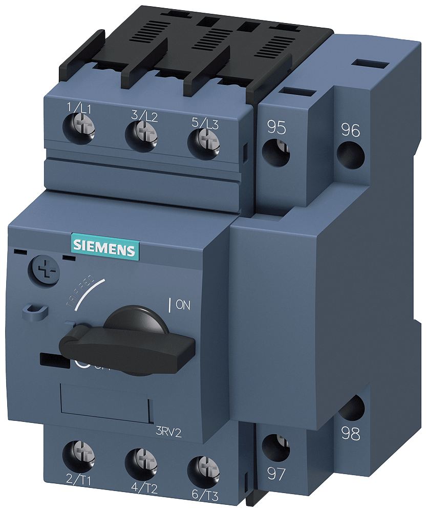 interruttore automatico grandezza costruttiva S00 per protezione motore, CLASS 10 con funzione di relè di sovraccarico sganciatore A 4,5...6,3 A sganciatore N 82 A morsetto a vite potere di manovra standard Interruttore automatico SIRIUS 3RV2 Per protezione motore con funzione di relè di sovraccarico per la disinserzione sicura in caso di cortocircuito e per la protezione da sovraccarico degli utilizzatori e dellimpianto nonché per la separazione sicura dellimpianto dalla rete. Gli interruttori automatici compatti e tropicalizzati sono ottimizzati, grazie alla loro bassa dispersione termica, per limpiego in partenze, naturalmente anche per motori IE3/IE4 e in egual misura per la commutazione di corrente continua. Sono ovviamente disponibili omologazioni internazionali (ad es. IEC e UL/CSA) ed esecuzioni per applicazioni in aree a rischio di esplosione (ATEX o IEC Ex). Sono disponibili varianti di apparecchio per la protezione motore (anche con funzione di relè di sovraccarico), protezione impianto, protezione da cortocircuito di avviatori combinati, protezione trasformatore. come interruttore principale e di ARRESTO DI EMERGENZA e per limpiego in reti IT. Essi sono disponibili con morsetti a vite o a molla per un collegamento rapido, esente da manutenzione e resistente alle vibrazioni nonché a scelta con blocchetto di contatti ausiliari incorporato. Tutti gli accessori come ad es. i blocchetti di contatti ausiliari, gli sganciatori ausiliari, i blocchetti di contatti di segnalazione etc. sono uniformemente adatti per tutte le grandezze costruttive. Le diverse possibilità di alimentazione di energia, come il sistema di alimentazione SIRIUS 3RV29, riducono notevolmente il cablaggio del circuito principale. Gli interruttori automatici 3RV2 sostituiscono la comprovata serie costruttiva 3RV1. Semplice, efficiente, sempre attuale - il sistema modulare SIRIUS.