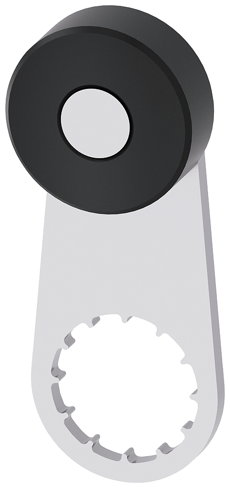 leva girevole per interruttori di posizione 3SE51/52 leva in metallo, lunga 30 mm con rotella in plastica 19 mm rotella montata capovolta ruotata di 180° sul lato posteriore della leva leva per comando rotativo SIRIUS 3SE5 per il rilevamento di posizionedi parti di macchina e per la sorveglianza della posizione di dispositivi di protezione. La struttura modulare degli interruttori di posizione 3SE5 consente una molteplicità di varianti con un numero ridotto di tipi da magazzino. Lampia varietà di connettori e rotelle consente di soddisfare tutte le esigenze nella quotidianità industriale. LED segnalano lo stato attuale dellapparecchio. Grazie alla tecnica di collegamento rapida i tempi di cablaggio risultano notevolmente ridotti. Punti di commutazione efissaggio secondo EN 50047 e EN 50041. Gli apparecchi hanno omologazioni internazionali (IEC, UL). Con le corrispondenti configurazioni di interruttore si possono soddisfare i massimi requisiti di sicurezza secondo PL e o SIL 3. Lelettronica ASIsafe integrata comporta un ridotto assorbimento di corrente. Sono disponibili diverse grandezze di custodia, con diversi contatti, in plastica o in metallo o in forma costruttiva compatta. Alcunevarianti sono disponibili opzionalmente con visualizzazione di stato a LED e connettore M12. La serie 3SF1 con collegamento diretto al sistema di bus AS-Interface completa la gamma di prodotti. Come accessori sono disponibili, a seconda dellesecuzione, testine di comando e connettori nonché ulteriori accessori di montaggio/collegamento. Safety is a SIRIUS business.