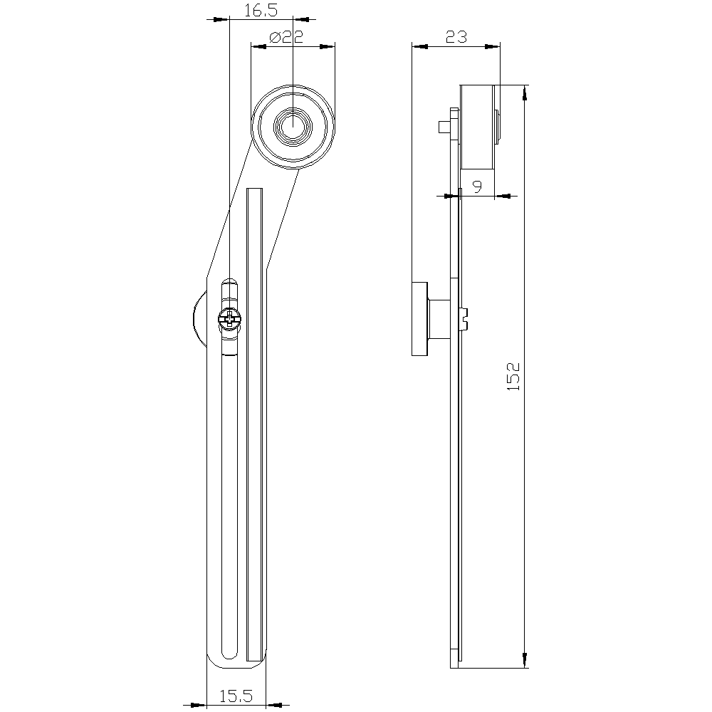 curvata regolabile in lunghezza leva girevole per interruttore di posizione 3SE51 con rotella in plastica 22 mm compresi adattatore e vite leva per comando rotativo SIRIUS 3SE5 per il rilevamento di posizione di parti di macchina e per la sorveglianza della posizione di dispositivi di protezione. La struttura modulare degli interruttori di posizione 3SE5 consente una molteplicità di varianti con un numero ridotto di tipi da magazzino. Lampia varietà di connettori e rotelle consente di soddisfare tutte leesigenze nella quotidianità industriale. LED segnalano lo stato attuale dellapparecchio. Grazie alla tecnica di collegamento rapida i tempi di cablaggio risultano notevolmente ridotti. Punti di commutazione e fissaggio secondo EN 50047 e EN 50041. Gli apparecchi hanno omologazioni internazionali (IEC, UL). Con le corrispondenti configurazioni di interruttore si possono soddisfare i massimi requisiti di sicurezza secondo PL e o SIL 3. Lelettronica ASIsafe integrata comporta un ridotto assorbimento di corrente. Sono disponibili diverse grandezze di custodia, con diversi contatti, in plastica o in metallo o in forma costruttiva compatta. Alcunevarianti sono disponibili opzionalmente con visualizzazione di stato a LED e connettore M12. La serie 3SF1 con collegamento diretto al sistema di bus AS-Interface completa la gamma di prodotti. Come accessori sono disponibili, a seconda dellesecuzione, testine di comando e connettori nonché ulteriori accessori di montaggio/collegamento. Safety is a SIRIUS business.