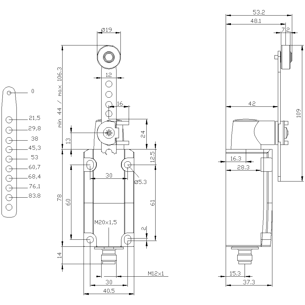 Höhe des Sensors - 53.3 mm