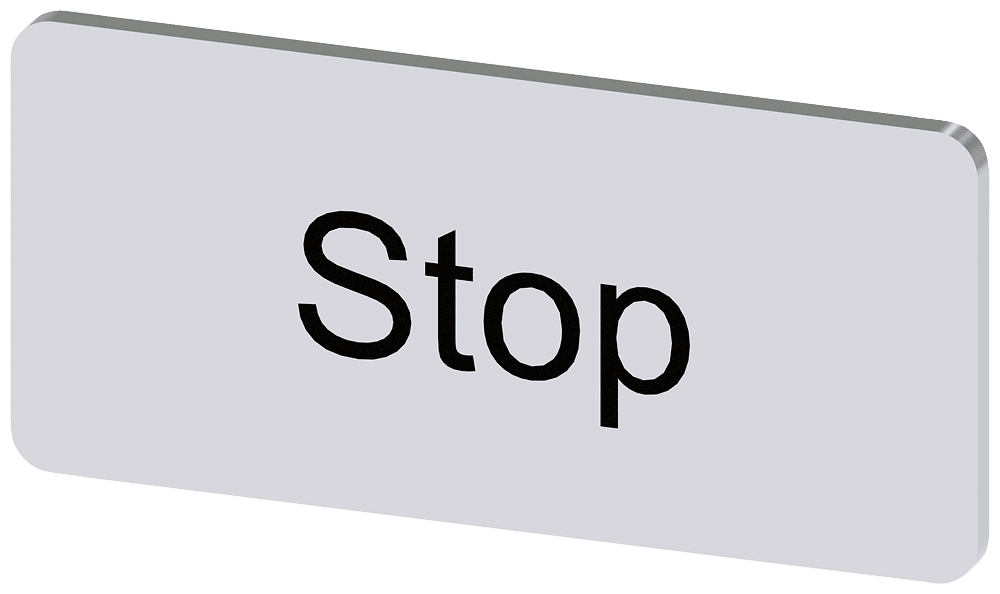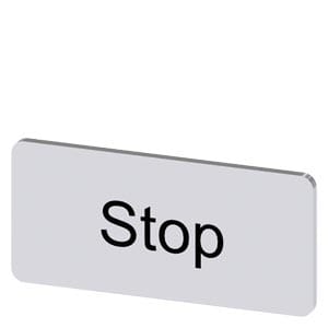 targhetta identificativa per fissaggio a scatto o incollaggio, su portatarghetta, grandezza della targhetta 12,5 x 27 mm, targhetta argento, caratteri neri, con iscrizione: Stop Targhetta identificativa per la siglatura dei dispositivi di comando e segnalazione SIRIUS ACT. Siemens offre, sotto il nome commerciale SIRIUS ACT, un portfolio esclusivo di dispositivi di comando e segnalazione con omologazioni di prodotto per il mercato mondiale in tre moderne serie di design in robusto metallo puro e plasticapregiata.Linnovativo concetto di innesto a scatto semplifica talmente il montaggio che per eseguirlo basta una sola mano e non servono attrezzi speciali. Per i fori di montaggio sono sufficienti semplici fori non scanalati, essendo già integrata una protezione antirotazione al 100 %.Grazie al grado di protezione elevato i robusti apparecchi sono adatti allimpiego industriale e in ambiente esterno. È persino possibile la pulizia con getto ad alta pressione. Né polvere, né oli, né liscivia possono comprometterne il funzionamento affidabile.Oltre che con il cablaggio standard, gli apparecchi possono essere collegati al controllore anche tramite PROFINET, AS-Interface oppure IO-Link. Potete così ridurre il vostro onere di cablaggio, minimizzare le fonti di errore e ottenere maggiore flessibilità.Il configuratore online grafico supporta in modo confortevole la scelta e lordinazione di singoli apparecchi, pulsantiere e iscrizioni. È disponibile una documentazione completa (ad es. manuale, dati 3D, schema di collegamento). Ampia gamma di accessori opzionali (ad es. targhette identificative, per protezione e accesso, operatori, accessori per pulsantiere). SIRIUS ACT - Performance in Action nel comando e nella segnalazione. Semplici da montare, altamente performanti, semplicemente perfetti.
