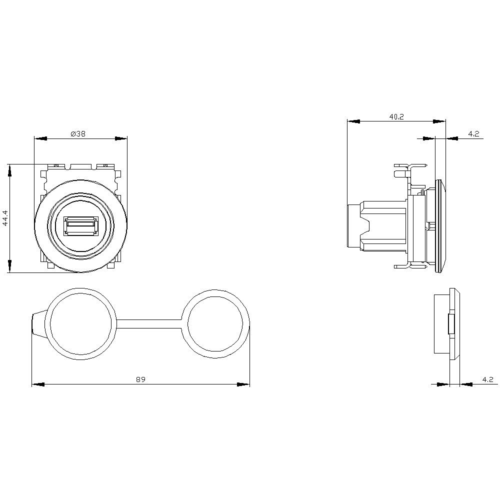 SIEMENS - SIE3SU19600GA800AA0 CONNETTORE USB 30MM METALLO OPACO - 3SU19600GA800AA0