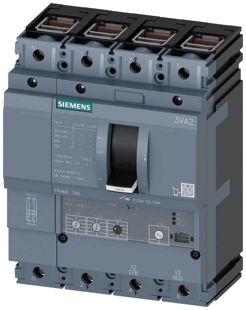 SIEMENS - SIE3VA21166HL460AA0 INT.AUT.3VA 160A 4P 85KA ETU3 LI B/T - 3VA21166HL460AA0