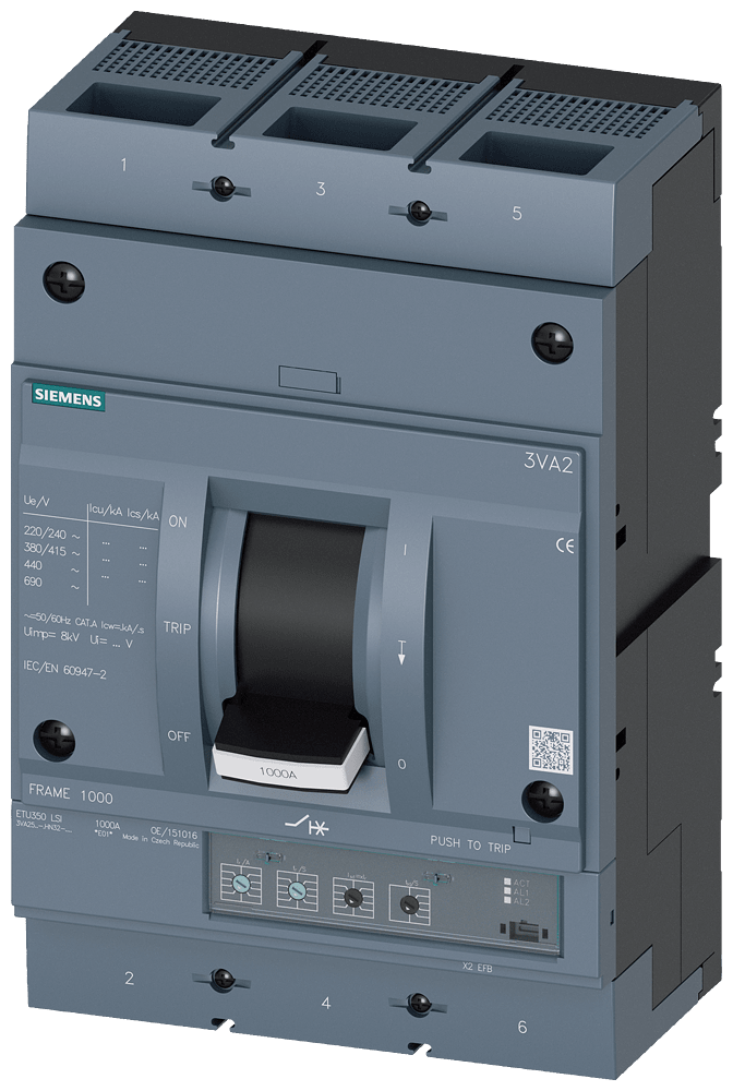 SIEMENS - SIE3VA25106HN320AA0 INT.AUT.3VA 1000A 3P 85KA ETU3 LSI L/T - 3VA25106HN320AA0