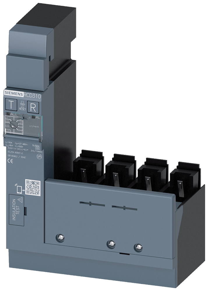 dispositivo di protezione differenziale RCD310 Basic RCD Tipo A montato lateralmente corrente di guasto nominale 0,03 ... 5 A a 50/60 Hz tempo regolabile a 4 poli In=160A Ue=127-480 V Accessori per: 3VA1 con collegamento con morsetti Interruttori automatici scatolati SENTRON 3VA - un sistema. Per tutte le applicazioni.