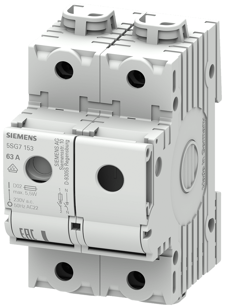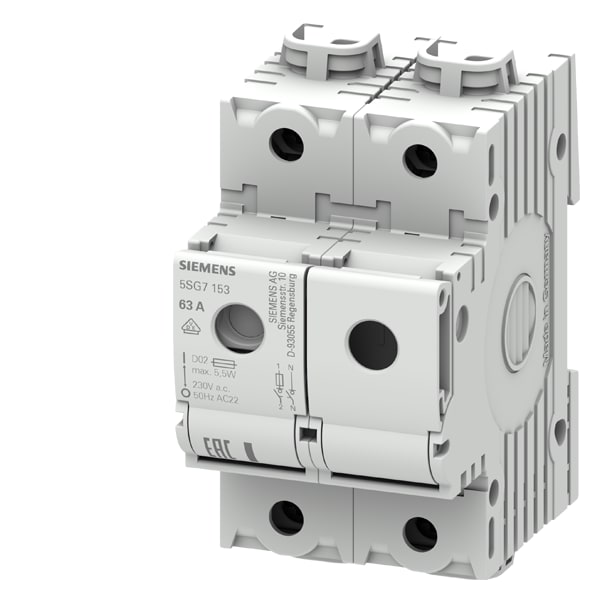 MINIZED, sezionatore sottocarico con fusibile, D02, 1P+N, In: 63 A, Un AC: 230 V senza inserto senza cartuccia fusibile SENTRON 5SG7 . Dispositivi di protezione SENTRON - Una scelta sicura.