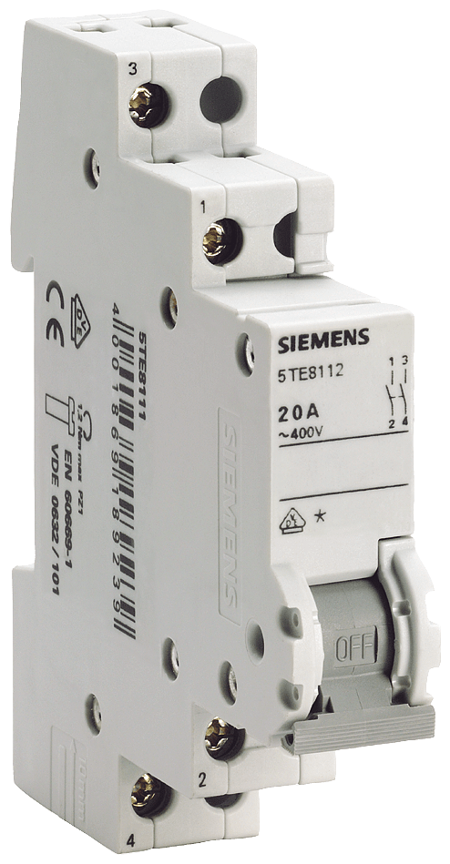sezionatore sottocarico, interruttore ON/OFF 20 A 2NO Apparecchi di manovra per montaggio su guida DIN per il comando di impianti elettrici. Gli apparecchi di manovra di Siemens si contraddistinguono soprattutto per le seguenti caratteristiche: 1. Molteplici applicazioni per il comando di piccoli carichi. 2. Ampia gamma di accessori unificati semplici da montare e sempre sostituibili. 3. Montaggio semplice e salvaspazio su guida DIN. 4. Possibilità di combinazione con interruttore con comando a distanza.5. Sicurezza affidabile durante linstallazione graziealla protezione avvolgente e alla protezione contro i contatti accidentali come dotazione standard. 6. Tecnica ottimale per la sicurezza - solo da Siemens.