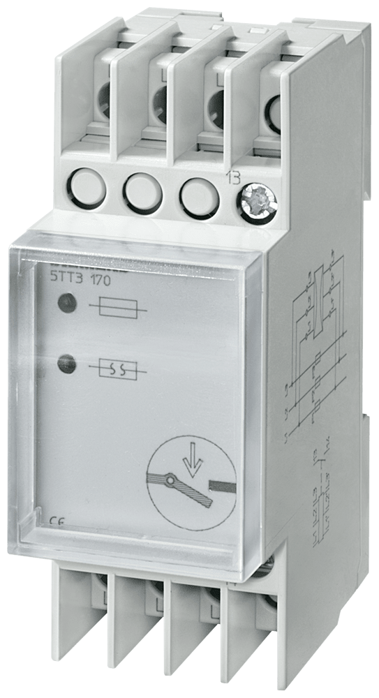 Dispositivo di controllo fusibili T55 3 AC 380 V ... 415 V con calotta trasparente Controllore di intervento fusibili SENTRON 5TT3 per applicazioni nelledilizia funzionale e per applicazioni industriali. I quadri elettrici SENTRON offrono una tecnica di collegamento e di montaggio comoda e semplice, nonché una sicurezza affidabile durante linstallazione grazie alla protezione contro i contatti accidentali come standard di serie. Con interruttori con comando a distanza, relè ausiliari, contattori Insta e orologi interruttori si hanno numerose possibilità per la realizzazione di diverse funzioni di commutazione. Per gli apparecchi di manovra SENTRON è disponibile unampia gamma di accessori di facile montaggio. Tecnica ottimale per la vostra sicurezza - solo da Siemens.