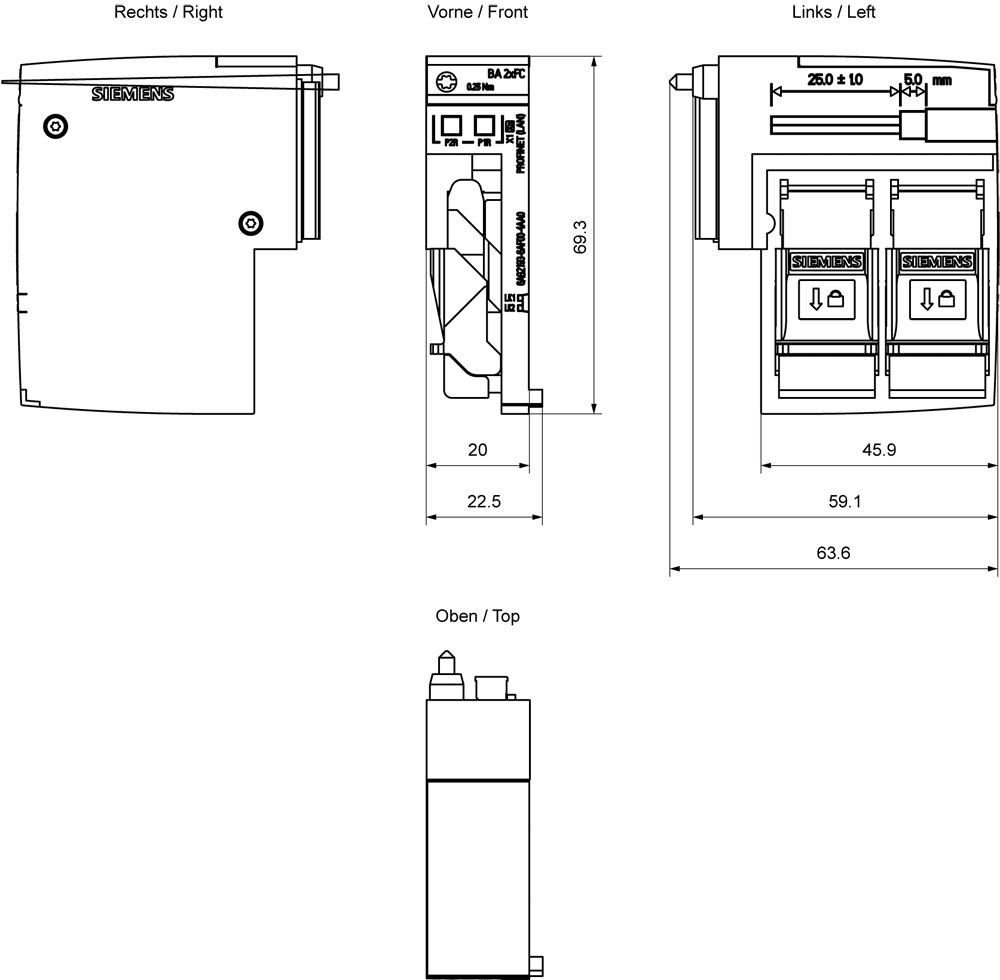 SIEMENS - SIE6AG21936AF004AA0 SIPLUS ET 200SP BA 2XFC TX RAIL - 6AG21936AF004AA0