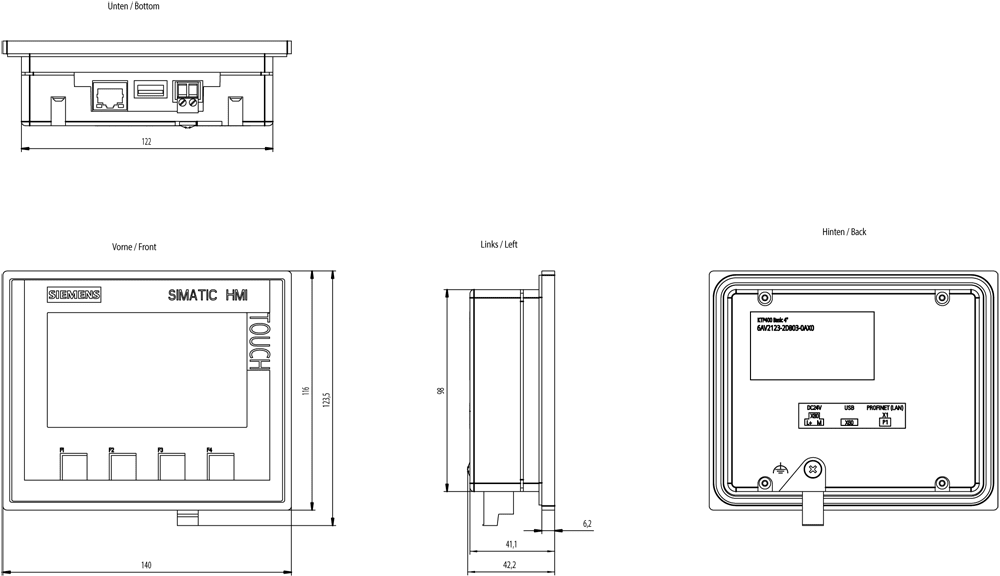 SIEMENS - SIE6AV21232DB030AX0 SIMATIC HMI KTP400 BASIC - 6AV21232DB030AX0